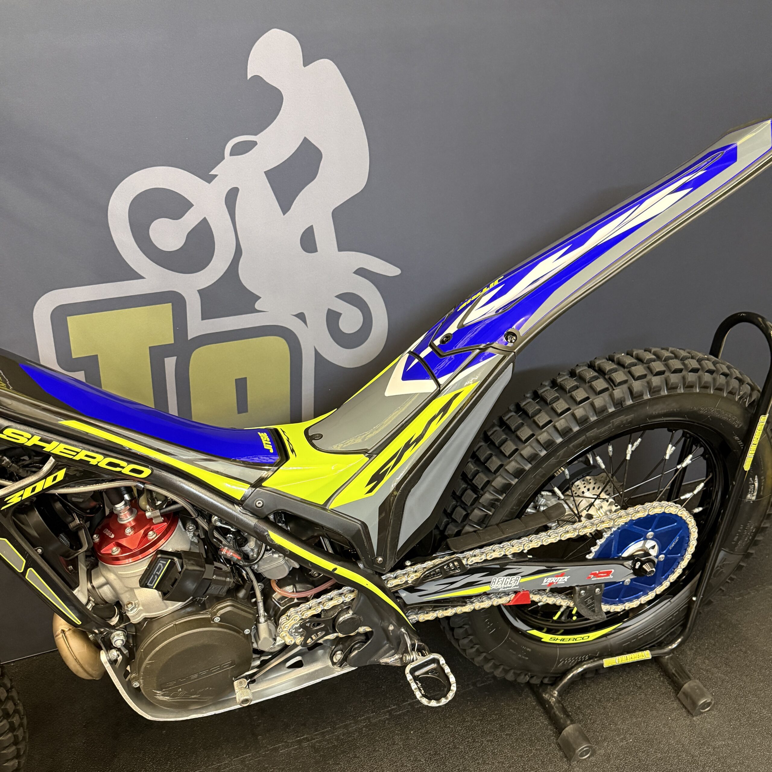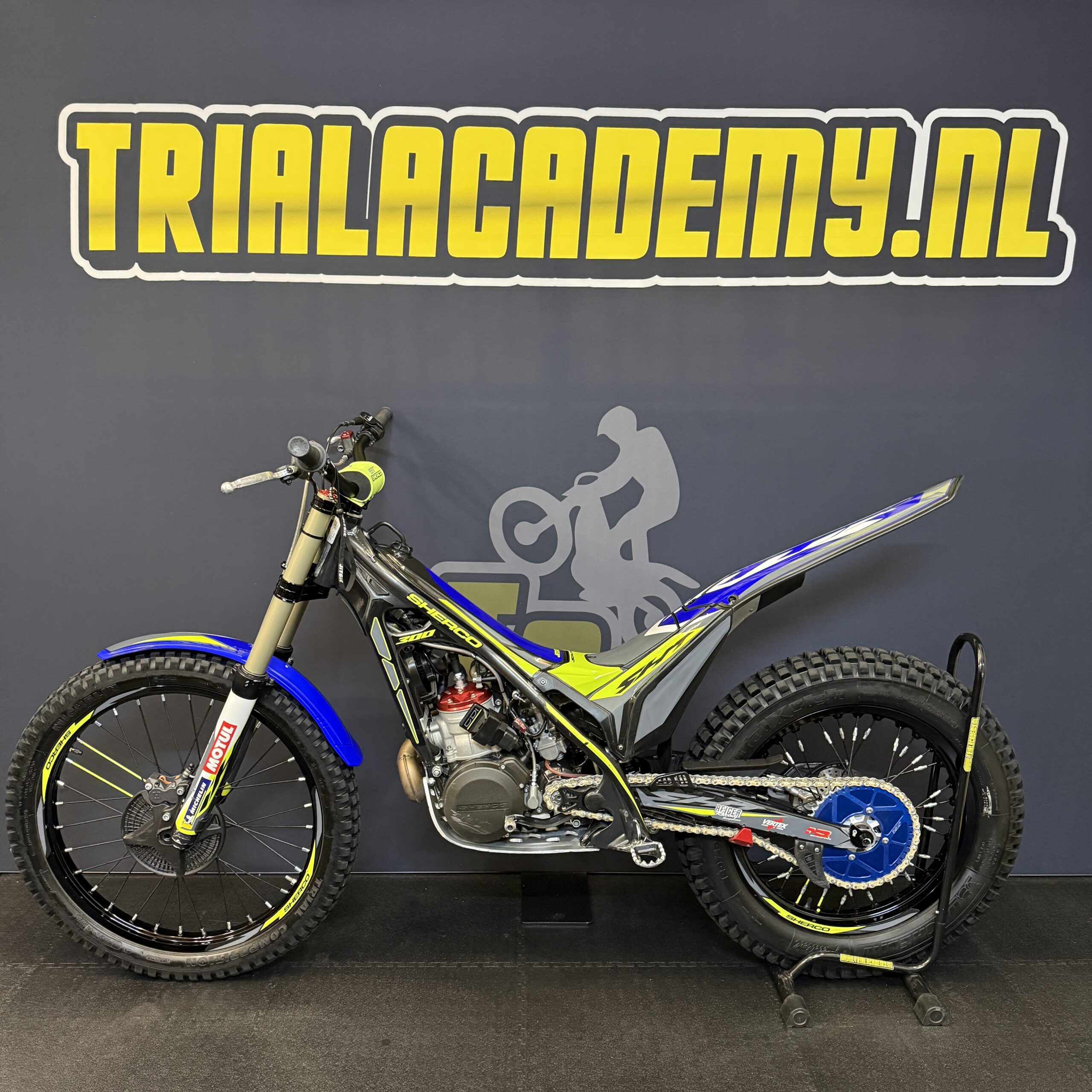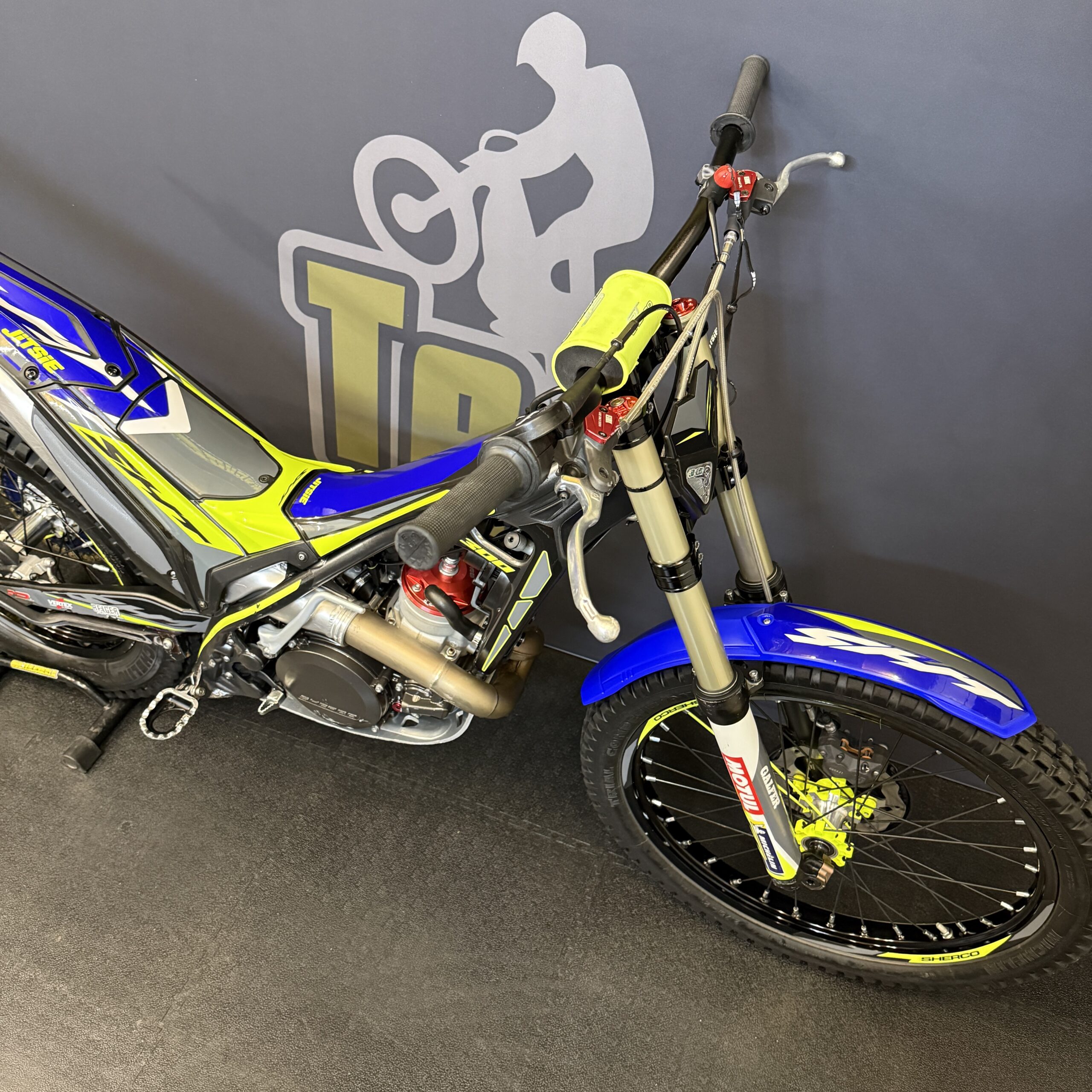 Zeer nette Sherco 2T, het laatste model met carburateur. Voorzien van Reiger achter-schokbreker en voldoet aan alle FIM eisen voor wedstrijden.